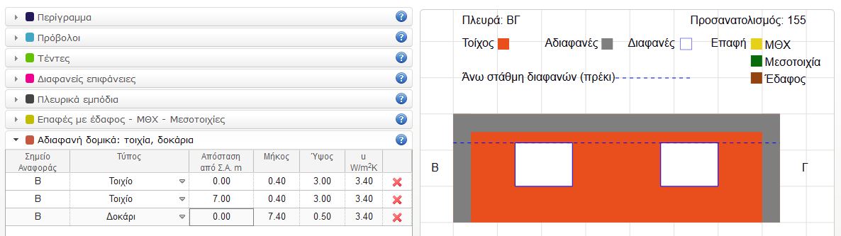 | α, ε, U | Αν δεν συμπληρωθούν παίρνουν τις τιμές του υπόλοιπου κτιρίου |