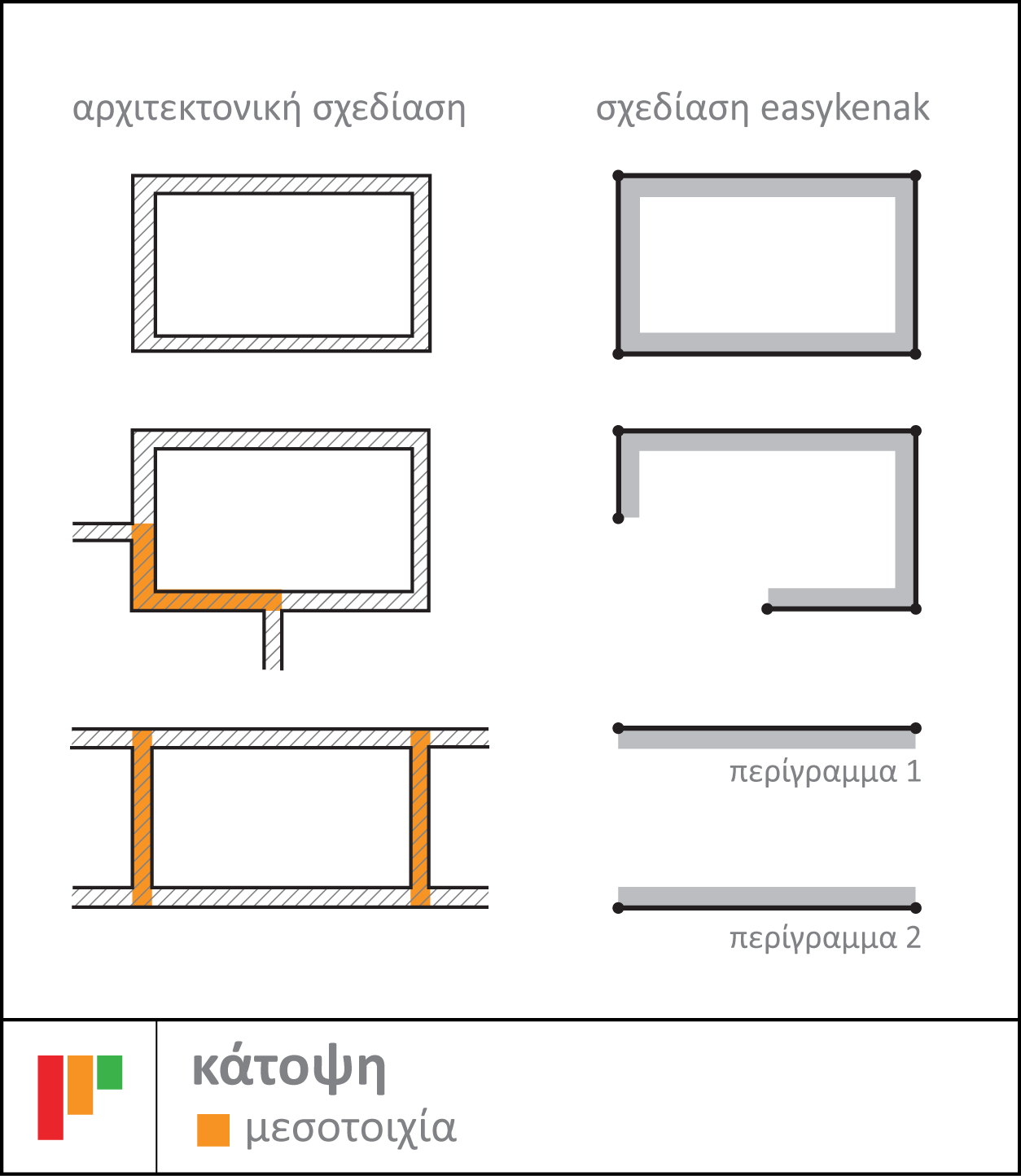 Περίγραμμα ορίζεται ένα συνεχόμενο τμήμα κελύφους σε επαφή με τον εξωτερικό αέρα, ΜΘΧ ή έδαφος. Υπάρχουν οι εξής τρόποι να σχεδιάσετε ένα περίγραμμα: