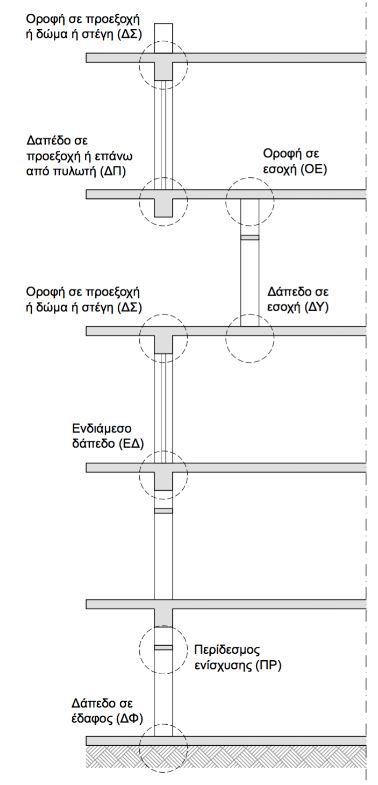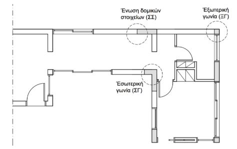 Στο παρακάτω σχήμα απεικονίζονται οι θέσεις των συνηθέστερων περιπτώσεων γραμμικών θερμογεφυρών: